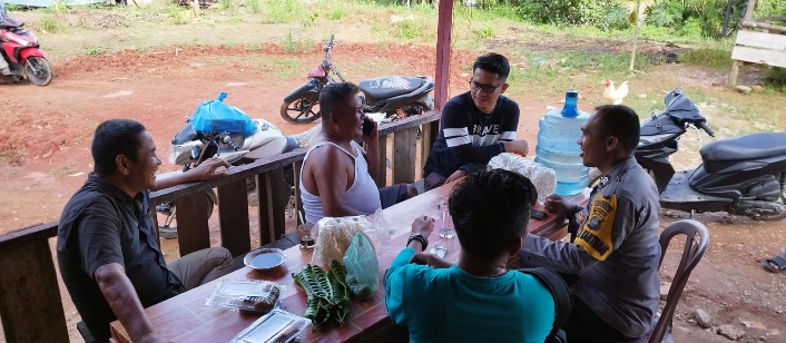 Bhabinkamtibmas Desa Sikumbu Sambangi Warga Sembari Ngopi Bersama