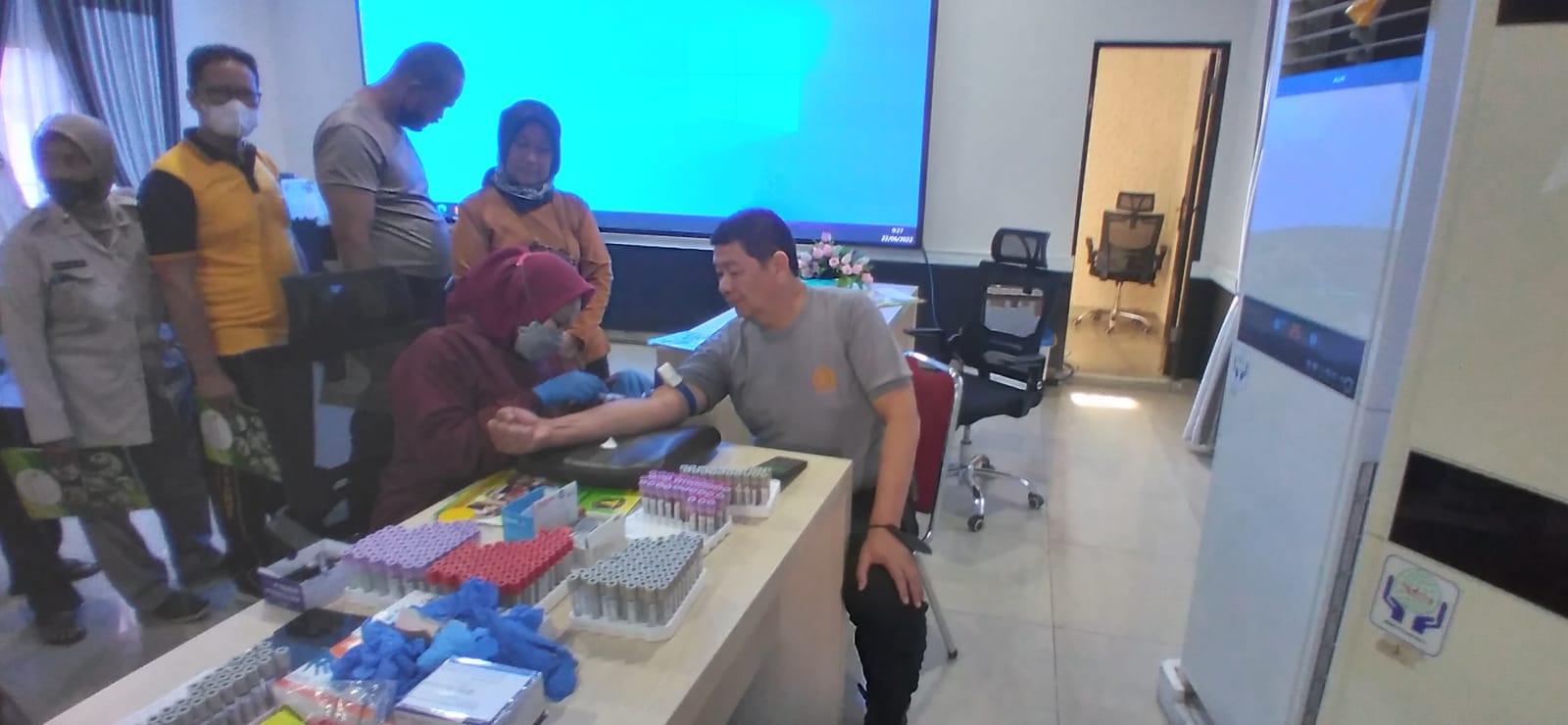 Kompastalk.co-Polrestabes Medan bekerjasama dengan Laboratorium Bunda Thamrin menggelar pemeriksaan kesehatan (rikkes) berkala terhadap ratusan anggota di ruang Patriatama Mapolrestabes Medan, Rabu (22/6/2022)