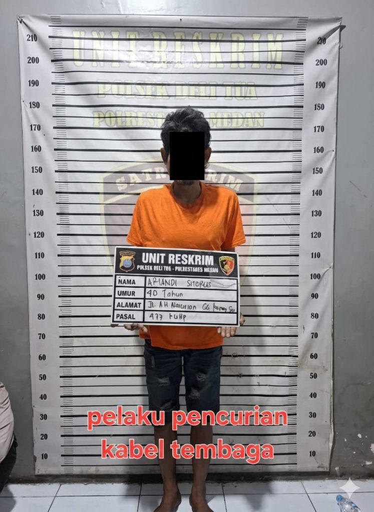 Tanpa ada perlawanan, kedua pelaku langsung diringkus dan dibawa ke Mapolsek Deli Tua. Polisi menyita barang bukti berupa 2 buah kabel tembaga hasil curian dan 1 buah parang yang digunakan sebagai alat bantu.