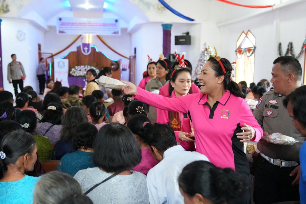 Ibadah Natal berlangsung dalam suasana penuh kehangatan, diisi dengan puji-pujian, persembahan dari Polwan, serta momen penyalaan lilin Natal yang sarat makna sebagai simbol terang dan harapan di tengah kegelapan.