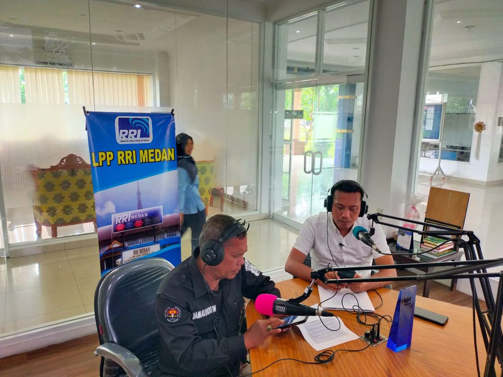 Paur Mitra Subbid Penmas dan Aiptu Widodo Banum dari Bidang Humas Polda Sumatera Utara, serta host dari RRI Medan Vira Aulia Rusli.