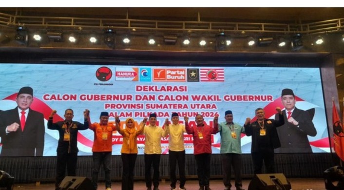 Pantauan detikSumut, Kamis (29/8/2024), keenam partai politik itu adalah PDIP, Hanura, Partai Buruh, PKN, Partai Ummat dan Partai Gelora. Deklarasi tersebut berlangsung di salah satu hotel di dekat Kantor KPU Sumut.