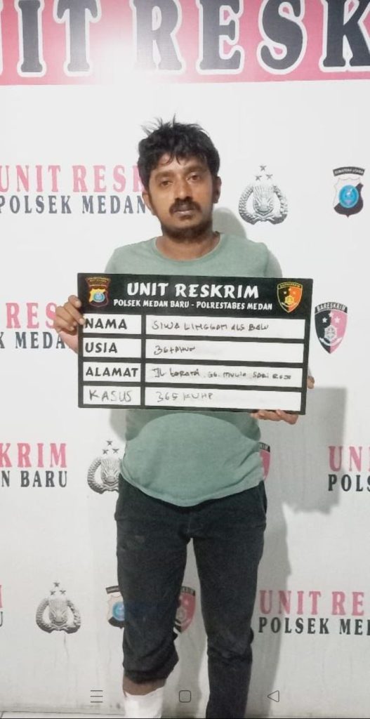 “Atas kejadian itu korban membuat laporan ke Polsek Medan Baru, dan selanjutnya laporan korban ditindak lanjuti personel Unit Reskrim Polsek Medan Baru untuk melakukan penyelidikan serta mengamankan pelaku yang sedang bersembunyi di Jalan Karya Lestari Gg Buntu kel. Polonia Kec. Medan Polonia,”ujarnya.