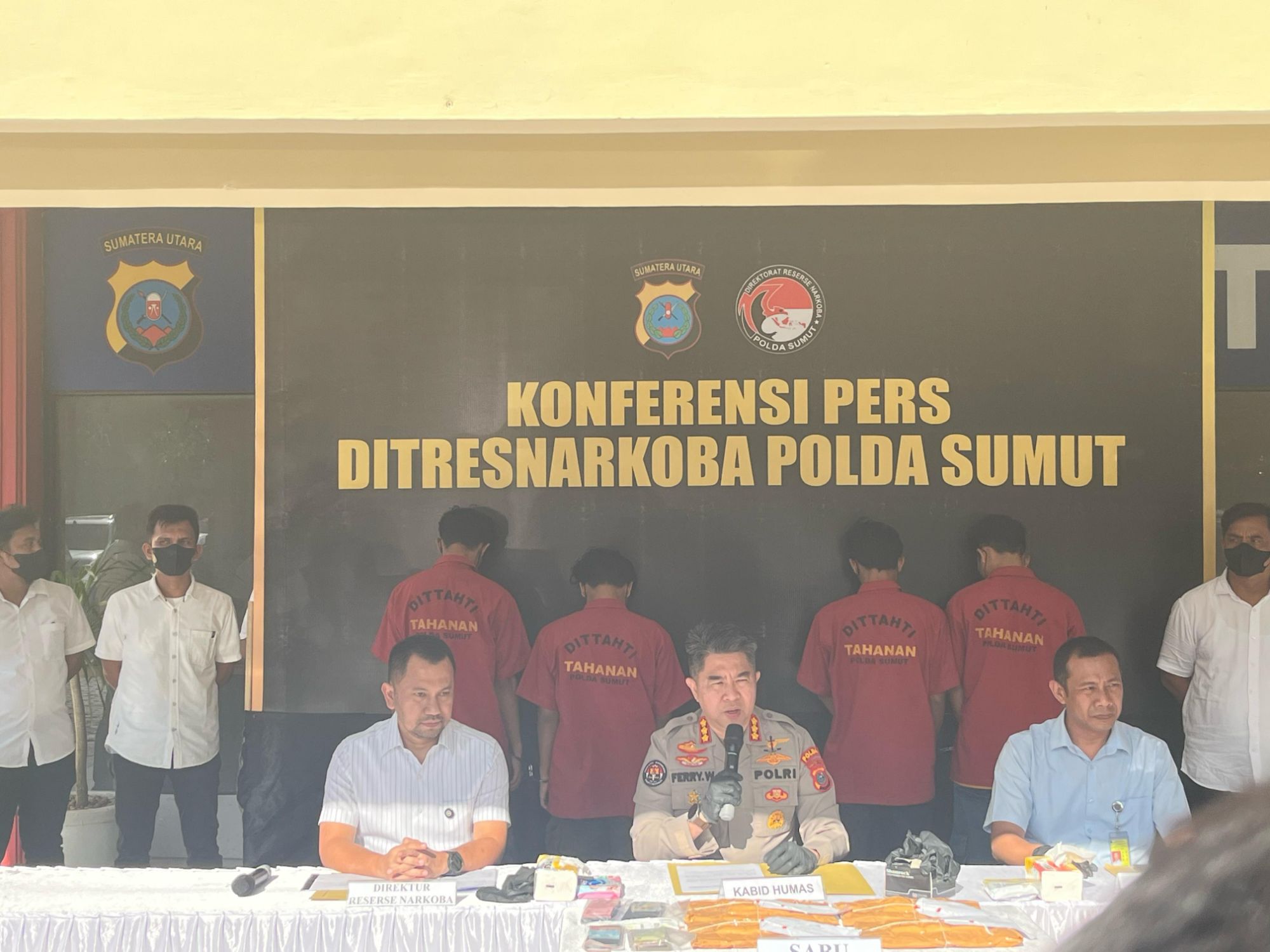 “Empat tersangka yakni LN, RZ, RA, dan IS, seluruhnya warga Jakarta, ditangkap saat hendak terbang dari Bandara Kualanamu menuju Kendari, Sulawesi Tenggara,” ujar Calvijn dalam konferensi pers di Mapolda Sumut, Rabu (30/4/2025), didampingi Kabid Humas Kombes Pol Ferry Walintukan serta petugas Avsec.