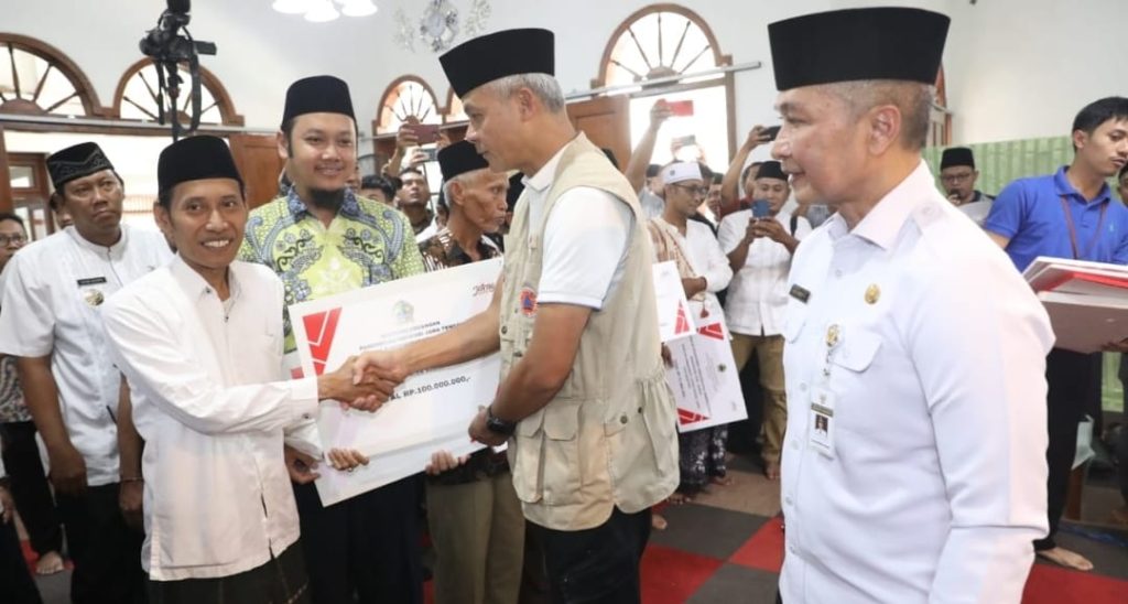 Selain Ponpes Darul Falah Jekulo, bantuan PLTS Rooftop juga diberikan kepada Ponpes Al-Qur’an Arroudlotul Mardliyah II. Ganjar juga menyerahkan bantuan paket sarpras perikanan budidaya senilai Rp19 juta untuk Remaja Asri.