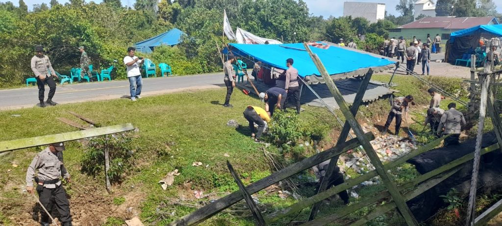 dan pada hari ini Minggu tanggal 26 Maret 2023 Personil Polres Mandailing Natal selain melakukan pengamanan juga melaksanakan gotong royong atau pembersihan lokasi pemlokiran jalan dan pendirian tenda oleh masyarakat yang melakukan aksi unjuk rasa.