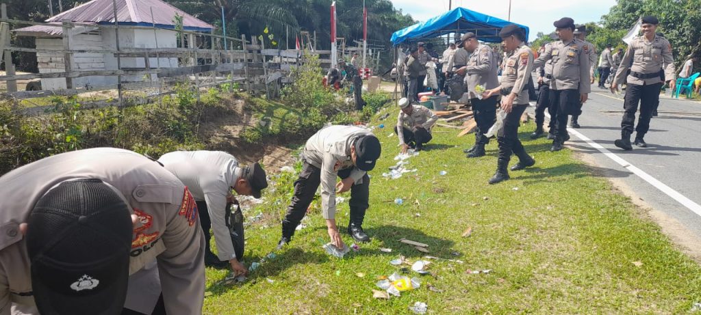 “selain melaksanakan pengamanan personil juga kita arahkan untuk melaksanakan gotong royong di lokasi unjuk rasa, dengan tujuan menjalin kekompakan antara polri, TNI, Masyarakat dan Pihak Perusahaan, dan kita himbau agar masyarakat dan perusahaan tetap jaga kamtibmas di wilayah mbg ini, apalagi saat kita kita dalam bulan puasa”. Tutup Waka Polres.
