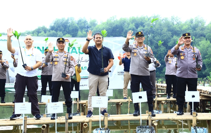 Jakarta. Divisi Humas Polri melakukan penanaman mangrove di Taman Wisata Muara Angke, Jakarta Utara. Penanaman mangrove tersebut dalam rangka memperingati Hari Ulang Tahun (HUT) ke-72 Humas Polri.
