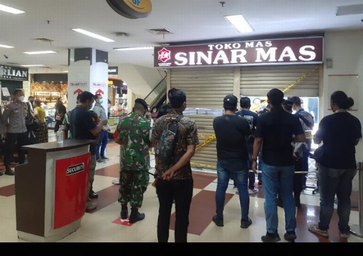 Kompastalk.co,Polisi mengecek lokasi perampokan toko emas Sinar Mas di ITC BSD, Serpong, Tangerang Selatan (Tangsel), Jumat (16/09/22). Nampak di lokasi, toko tersebut telah dipasangi garis polisi.