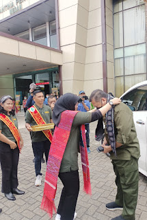 Kunjungan kerja Itjen Kementan dan rombongan disambut tor-tor oleh Pegawai Karantina Pertanian Medan. (Gibson)