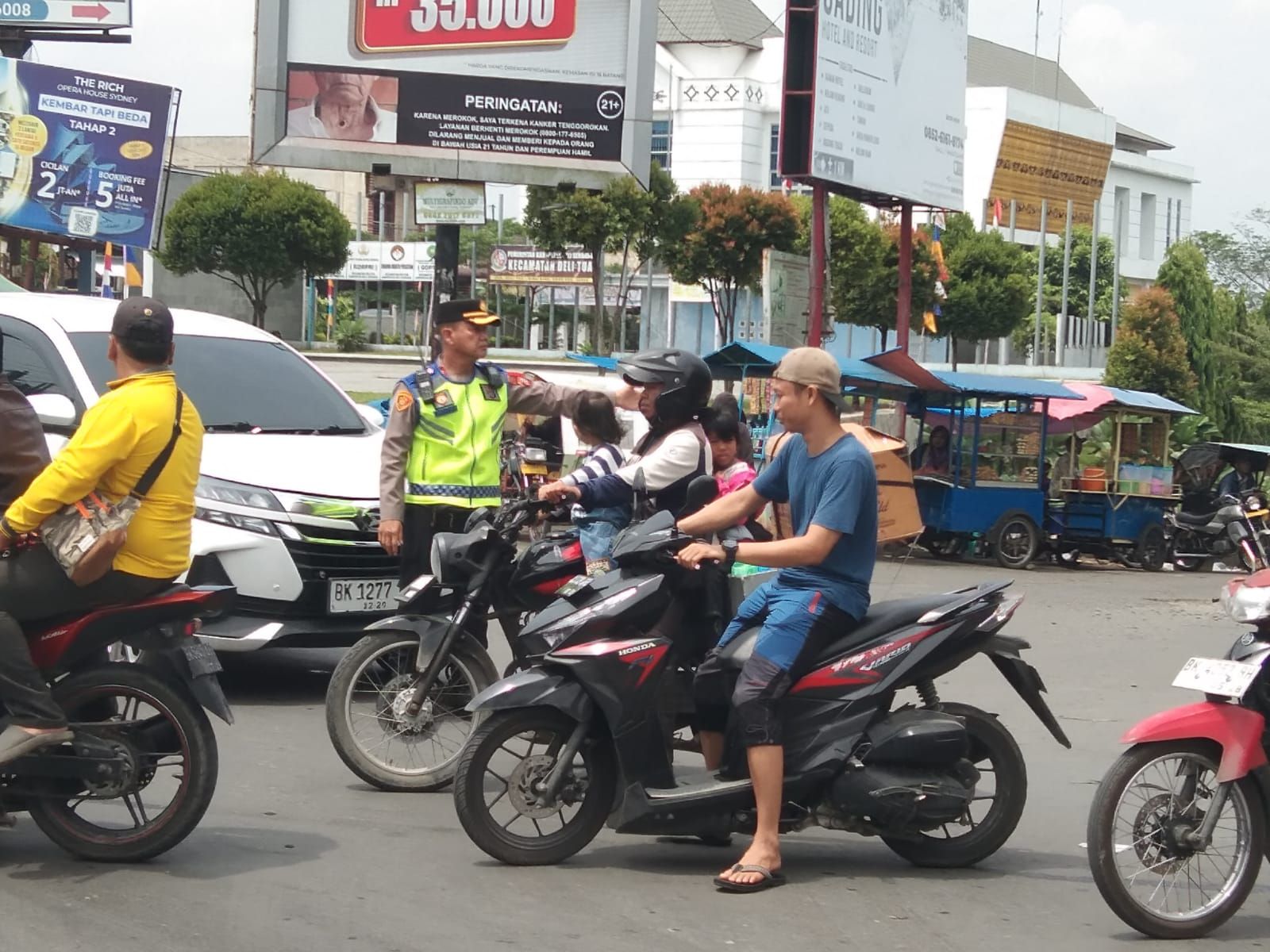 Para pedagang yang berada di kota Delitua itupun terlihat senyum senyum kepada kepolisian, karena jalan lancar, pedagang nyaman dan tidak dapat gusuran karena mencari makan di momen lebaran.