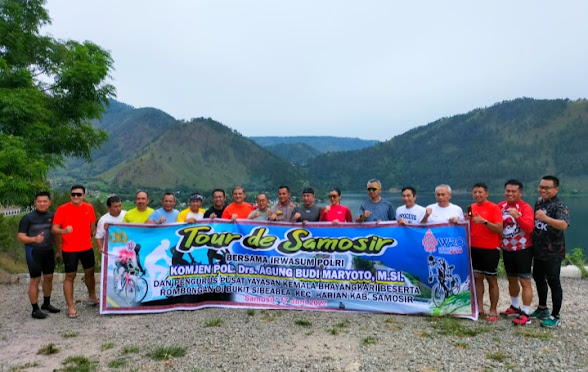 Disela kunjungannya tersebut, Irwasum Kepolisian Republik Indonesia (Polri), Komjen Pol Drs. Agung Budi Maryoto, M.Si, bersama dengan Yayasan Kemala Bhayangkari, menggelar gowes “Tour de Samosir”, kemarin.