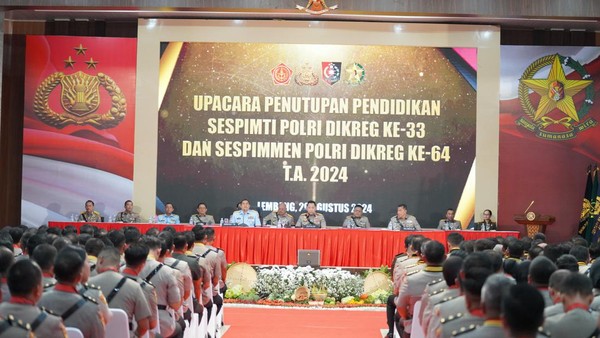 Kompastalk.co,Jakarta – Kapolri Jenderal Listyo Sigit Prabowo menutup pendidikan Sespimti Dikreg ke-33 dan Sespimen Dikreg ke-64 tahun ajaran 2024. Sejumlah pejabat utama Mabes Polri mendampingi, termasuk Kepala Sespim Lemdiklat Polri Irjen Chrysnanda Dwilaksana.