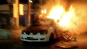Massa juga membakar pos polisi di Kuanino. Mobil dan motor juga dibakar.