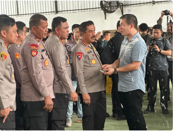 MEDAN, Kompastalk. Co– Wakapolri Komjen Agus Andrianto SH menyerahkan 10 ribu paket sembako kepada masyarakat Belawan, Jumat (23/8). Didampingi Kapolda Sumut Irjen Whisnu, dalam sambutannya meminta masyarakat untuk bersama-sama menjaga keamanan dan ketertiban.