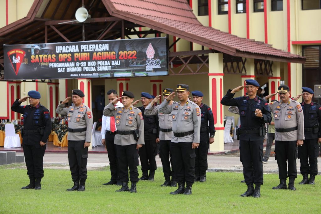 Kompastalk.co,Kapolda Sumut Irjen Pol Drs. R. Z. Panca Putra S., M.Si memimpin upacara pemberangkatan personel Sat Brimob Polda Sumut dalam rangka pengamanan Operasi Puri Agung 2022 – Konferensi Tingkat Tinggi G20 BKO Polda Bali