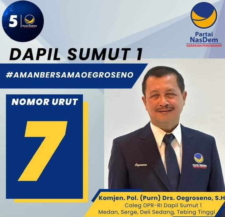 Agus pun kemudian menyebut nama Komjen Pol Purn Oegroseno yang diusung oleh partai Nasdem dari Dapil Sumut 1. Pria berdarah NTT itu kemudian menyebutkan bahwa memang sosok Oegroseno sangat layak untuk dijadikan sebagai wakil rakyat Sumut di DPR RI.