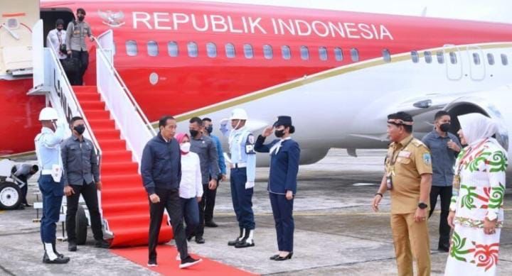 Kalimantan Utara, (kompastalk.co) – Presiden Joko Widodo dan Ibu Iriana Joko Widodo tiba di Pangkalan TNI AU Anang Busra, Kota Tarakan, Provinsi Kalimantan Utara (Kaltara), pada Selasa, 28 Februari 2023, sekitar pukul 11.00 WITA. Kedatangan Presiden dan Ibu Iriana disambut oleh Gubernur Kalimantan Utara Zainal Arifin Paliwang dan istri, Pangdam VI/Mulawarman Mayjen TNI Tri Budi Utomo dan istri, Kapolda Kalimantan Utara Irjen Pol. Daniel Adityajaya dan istri, Danlanud Anang Busra Kolonel Pnb. Bambang Sudewo dan istri, serta Danlantamal XIII Tarakan, Laksma TNI Deni Herman dan istri.
