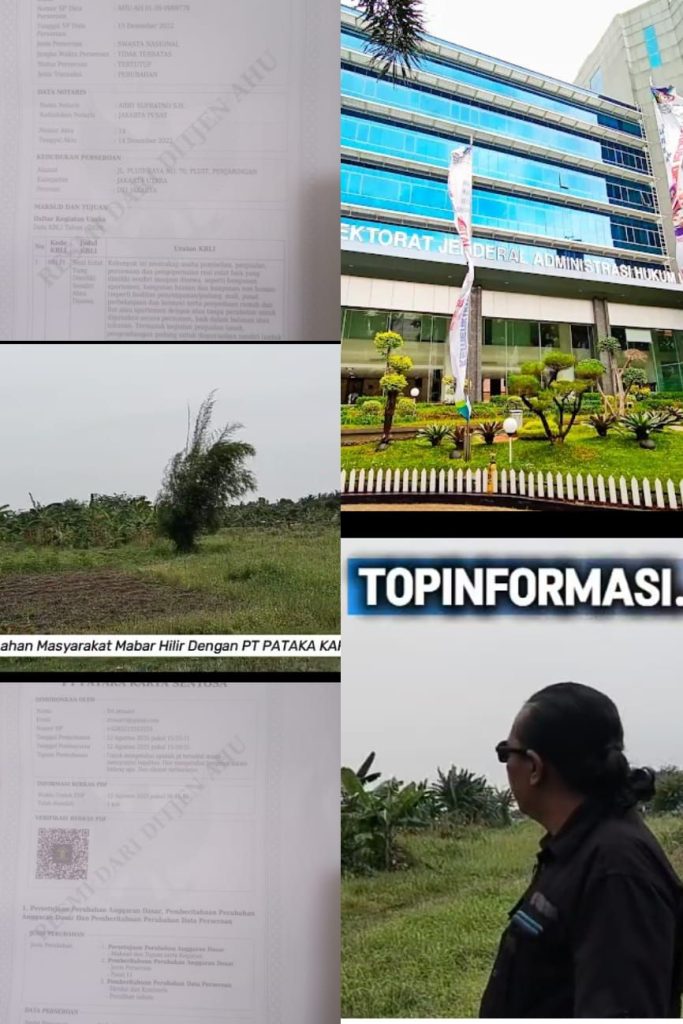 Sumut, KOMPASTALK.CO– Berawal dari persengketaan lahan seluas 18 hektar di Jalan Rumah Potong Hewan, Kelurahan Mabar Hilir, Kecamatan Medan Deli, Kota Medan, antara hak milik masyarakat dan Hak Guna Bangunan (HGB) milik PT. Pataka Karya Sentosa, muncul fakta investigasi media yang menduga adanya ketidakberesan dalam legalitas resmi PT. Pataka Karya Sentosa yang diduga bodong. Situasi ini menempatkan Kementerian Hukum dan HAM (Kemenkumham) dalam sorotan nasional. Kamis (25/9/2025).
