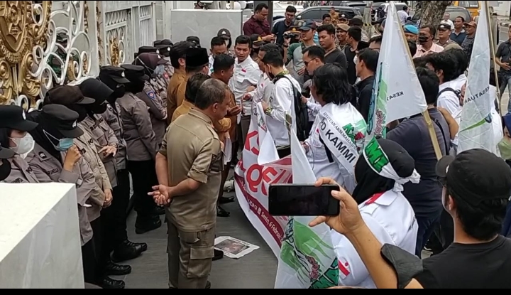 Di Kantor Gubernur Sumut, massa aksi FSLDK Sumut dan KAMMI diterima oleh Biro Kesejahteraan Masyarakat Pemprov Sumut.