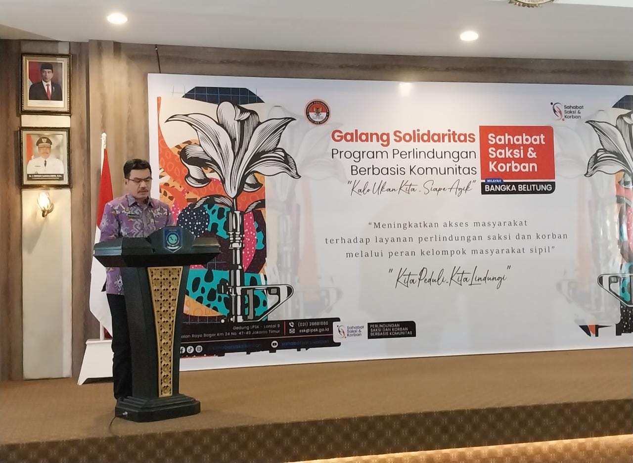 Itulah kata pembuka yang disampaikan oleh pemandu acara/moderator saat membuka kegiatan sosialisasi program LPSK RI bertajuk ‘Galang solidaritas program perlindungan berbasis komunitas, sahabat saksi dan korban, Meningkatkan akses masyarakat terhadap layanan perlindungan saksi dan korban melalui peran kelompok masyarakat sipil. Dengan motto ” Kita peduli – Kita lindungi, bertempat di ruangan Pasir Padi lantai 3 Kantor Gubernur Kepulauan Bangka Belitung, Air itam Kota Pangkalpinang, Kamis (30/06/2022) pagi.