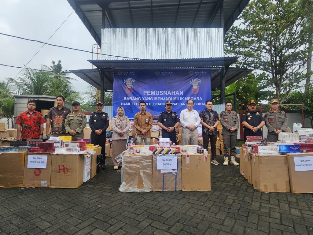 Bea Cukai Sibolga melakukan pemusnahan barang bukti kepabeanan dan cukai di Kuala Tanjung, Kabupaten Batubara, Jumat (19/12/2025).