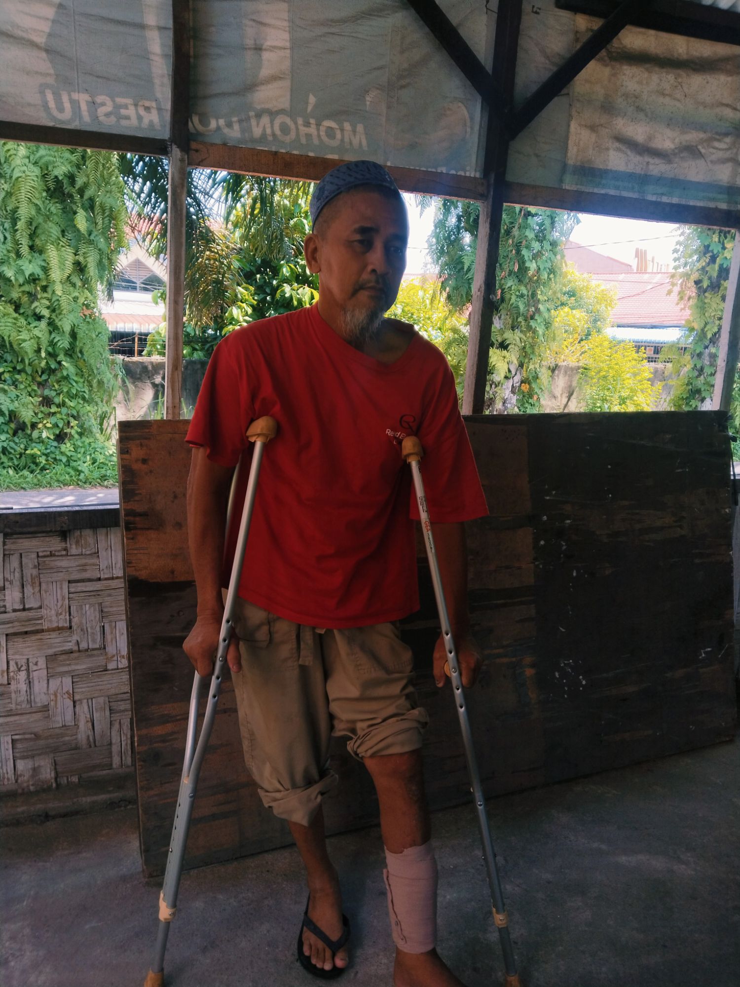 “Saya tidak bisa berjalan. Sudah dua bulan hanya bisa terbaring dan menjalani rawat jalan setiap dua hari sekali. Obat-obatan mahal, biaya rumah tangga makin berat, saya hanya bisa pasrah,” ujar Samsu Rizal saat ditemui awak media dengan suara bergetar.