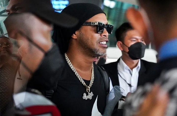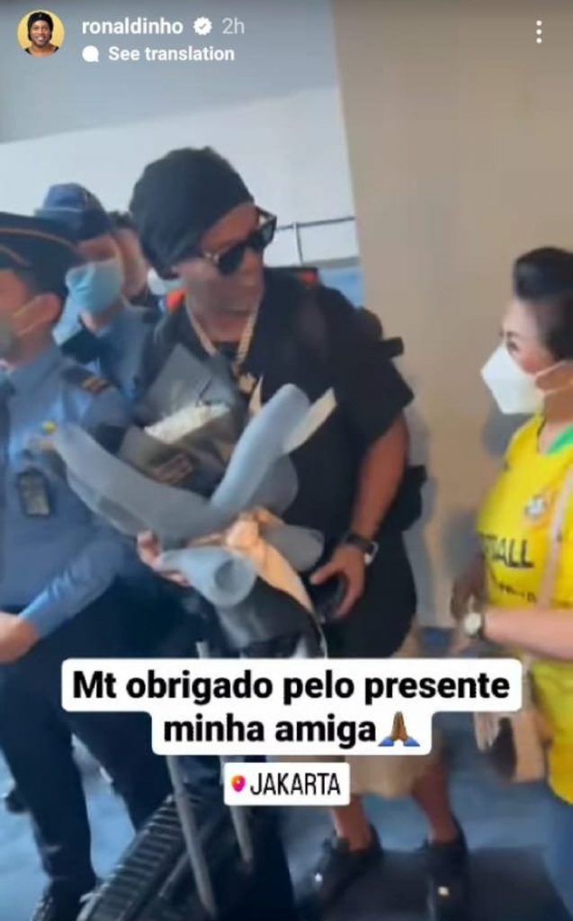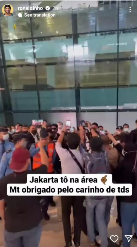 “Saya tiba di Jakarta. Terima kasih banyak atas cinta semua orang,” tulis Ronaldinho menggunakan bahasa Portugis.