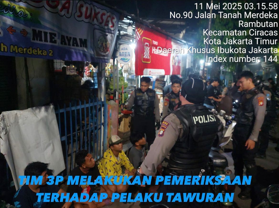Sekitar pukul 03.15 WIB, tim patroli mendapati sekelompok pemuda dengan gelagat mencurigakan di kawasan Jalan Tanah Merdeka. Setelah dilakukan pemeriksaan dan penelusuran hingga ke Jalan Tanah Merdeka X, para remaja tersebut diketahui hendak melakukan tawuran dan langsung diamankan ke Polsek Ciracas.