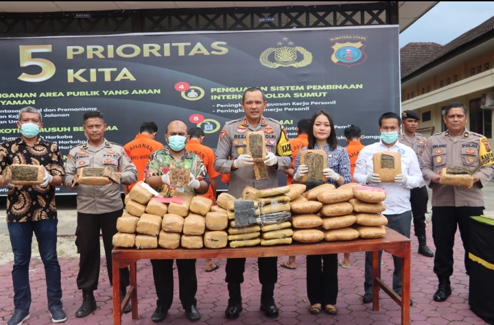 Mandailing Natal – Polres Mandailing Natal (Madina) memusnahkan puluhan ball daun ganja kering siap edar hasil tangkapan selama sebulan operasi oleh Satnarkoba.