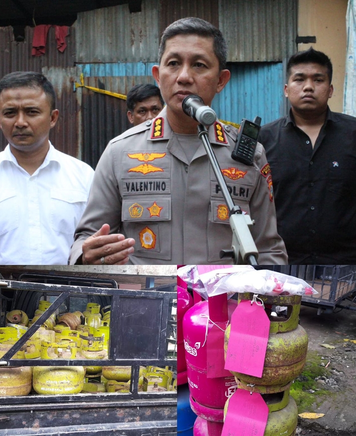 Satuan Reskrim Polrestabes Medan mengungkap kasus pengoplosan tabung gas bersubsidi di Jalan Cempaka, Kecamatan Delitua, Deli Serdang.