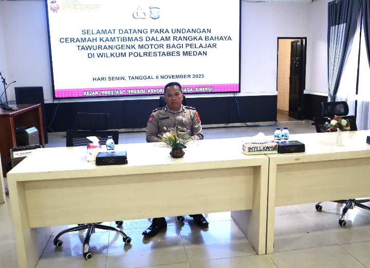 “Pertemuan dengan Kepsek SMP dan SMA maupun SMK ini digelar di Ruang Patriatama Mapolrestabes Medan,” kata Kapolrestabes Medan Kombes Pol Valentino Alfa Tatareda, SH, SIK melalui Kasat Binmas Kompol Kamdani S.Ag,M.H, Senin (6/11/2023).