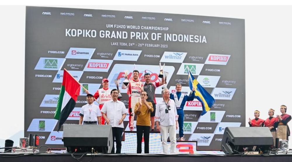 Turut hadir menyaksikan gelaran F1H2O yaitu Ketua MPR Bambang Soesatyo, Menteri Koordinator Bidang Kemaritiman dan Investasi Luhut Binsar Pandjaitan, Menteri Sekretaris Negara Pratikno, Menteri Hukum dan HAM Yasonna Laoly, Menteri Pariwisata dan Ekonomi Kreatif Sandiaga Uno, Panglima TNI Laksamana Yudo Margono, Kapolri Jenderal Listyo Sigit Prabowo, Gubernur Sumatra Utara Edy Rahmayadi, Bupati Toba Poltak Sitorus, Direktur Utama InJourney Dony Oskaria, dan Presiden F1H2O/Powerboat Nicola di San Germano. (Frank_01/r)