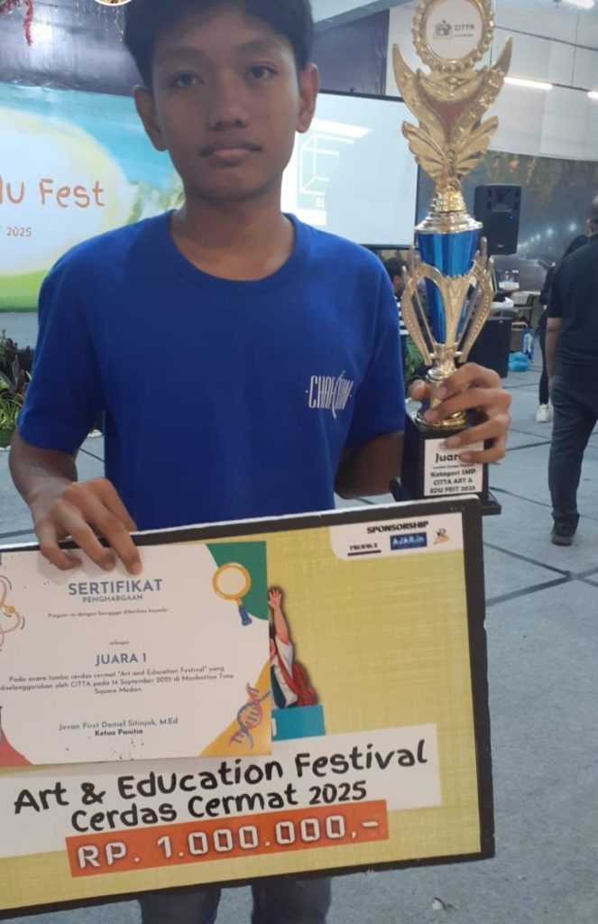 Sekolah Menengah Pertama (SMP) swasta Kalam Kudus mendapat juara pertama pada perlombaan “Art and Education Festival” Cerdas Cermat 2025.