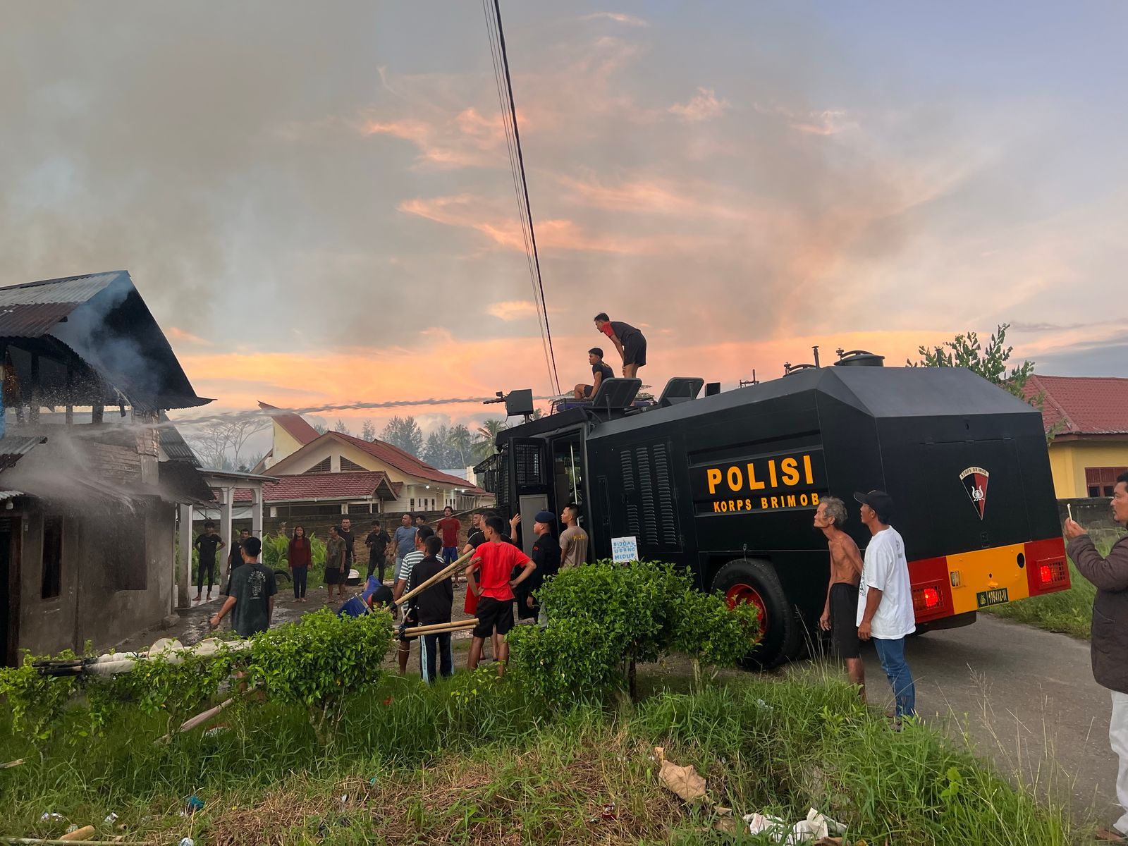 Gunung Sitoli ,Kompastalk.co– Rumah warga telah terbakar, Personil Kompi 4 Batalyon C Sat Brimob Kepulauan Nias Polda Sumut, gerak cepat turun di TKP memadamkan api.