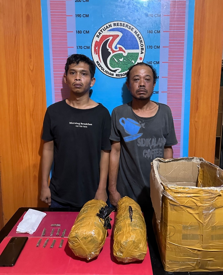 Kompastalk .co- Satuan Reserse Narkoba Polres Mandailing Natal (Madina) berhasil mengamankan 2 orang laki-laki yang diduga sebagai kurir ganja, RTN alias R (25) dan FH alias H (42) di Jalan Lintas Raja Junjungan Lubis Kelurahan Pidoli Dolok Kecamatan Panyabungan tepatnya di stasiun Antar Lintas Sumatera (ALS), pada hari sabtu tanggal 22 Juli 2023 sekira pukul 19. 30 Wib.