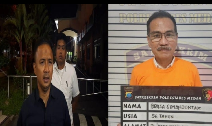 Medan – Satreskrim Polrestabes Medan melakukan penangkapan terhadap tersangka Boasa Simanjuntak (56) warga Jalan Karya Mesjid, Gang Murni, Kelurahan Sei Agul, Kecamatan Medan Barat, Kota Medan.