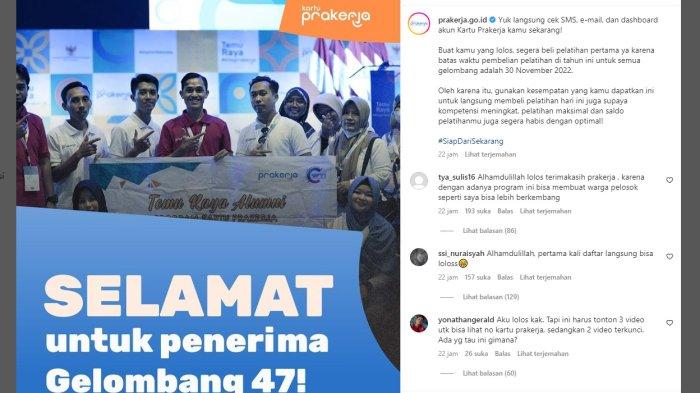 Kompastalk.co,Informasi pengumuman Kartu Prakerja gelombang 47 diketahui melalui akun Instagram @prakerja.go.id pada Senin, (31/10/2022).