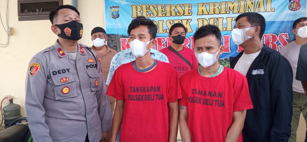 Kapolsek Delitua Kompol Dedi Dharma, S.H, M.H didampingi Kanit Reskrim Polsek Delitua Iptu Irwanta Sembiring,S.H, M.H, saat mengadakan Pres rilis, Jumat (3/6/2022) sekira pukul 11.00 Wib menjelaskan, kalau pihaknya sudah mengarahkan pihak korban untuk membuat laporan ke Polsek Delitua, dan juga mengatakan kalau kedua tersangka beserta barang bukti sudah ditangkap dan diamankan di Mako Polsek Delitua guna sidik Lanjut.