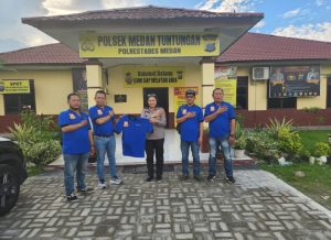 Kemudian, Ketua Pewarta Polrestabes Medan Chairum Lubis,SH menyerahkan baju uniform baru Pewarta kepada Kapolsek Tuntungan Iptu Christin Malahayati Simanjuntak di depan Makopolsek.