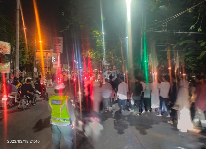 Dalam pelaksanaan pengamanan personel di ploting pada jalan yang dilintasi oleh kegiatan pawai obor tarhib Ramadhan, hingga kegiatan selesai berlangsung dalam keadaan kondusif.