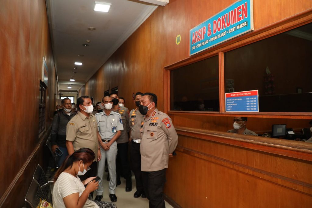 Kompastalk.co,Kapolda Sumut Irjen Pol Drs. R. Z. Panca Putra S., M.Si meninjau pelayanan yang diberikan kepada masyarakat di Kantor Samsat Medan, Selasa (1/11)