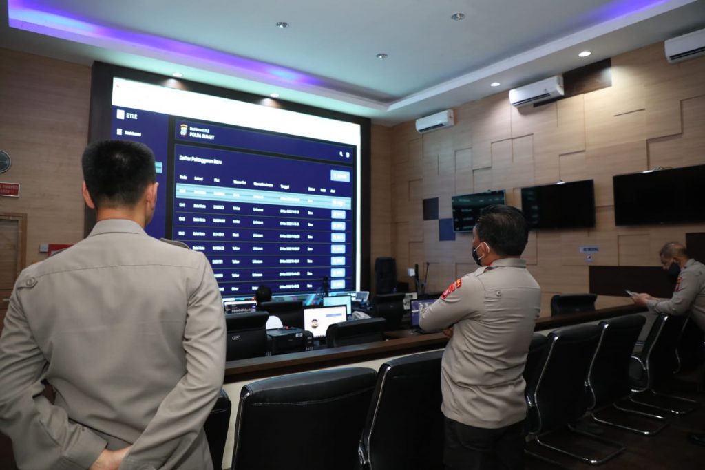 Didampingi Wakapolda Sumut Brigjen Pol Dr. Dadang Hartanto, S.H., S.I.K., M.Si, Irwasda Polda Sumut beserta para Pejabat Utama, Kapolda Sumut meninjau ruang Satgas ETLE Ditlantas Polda Sumut